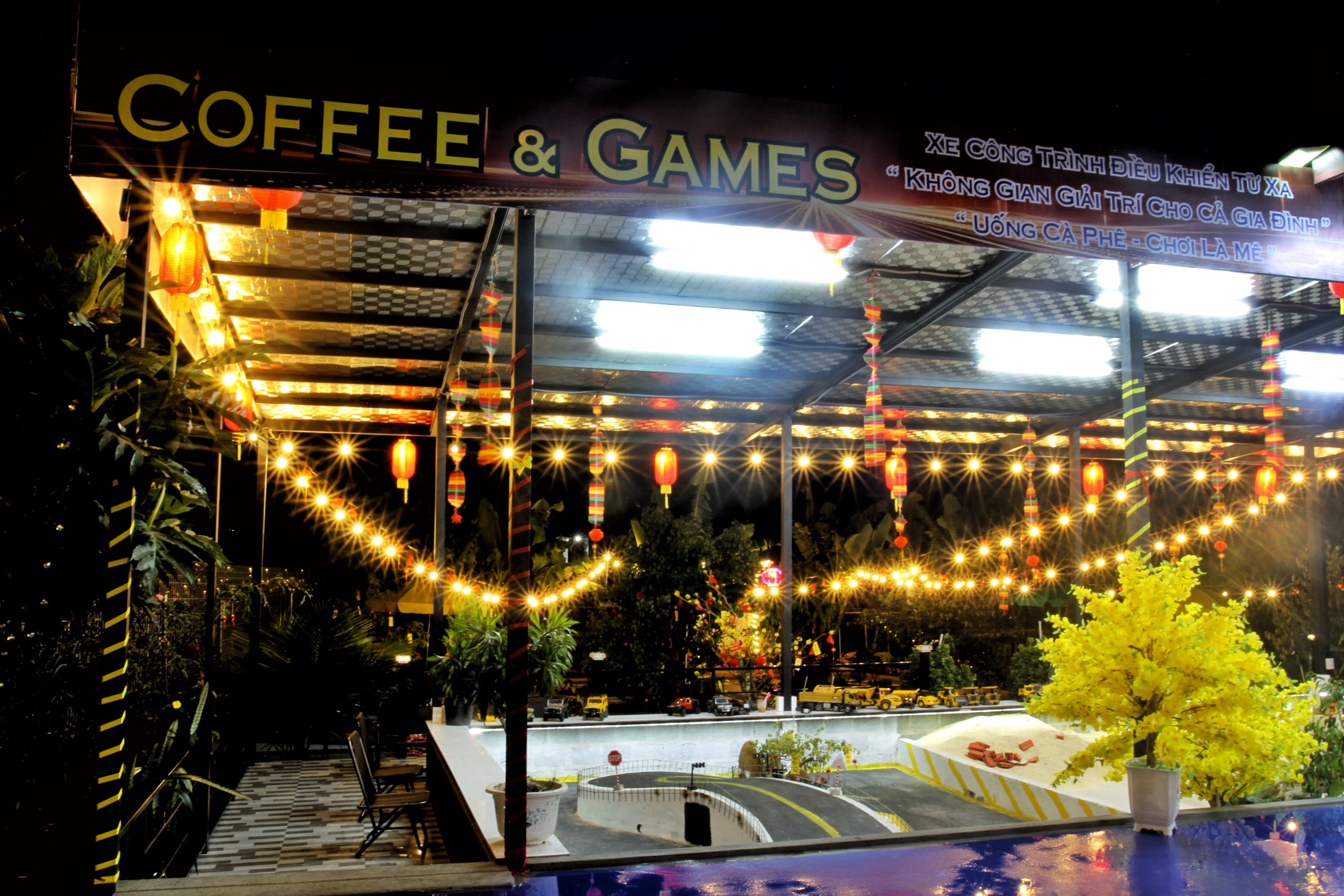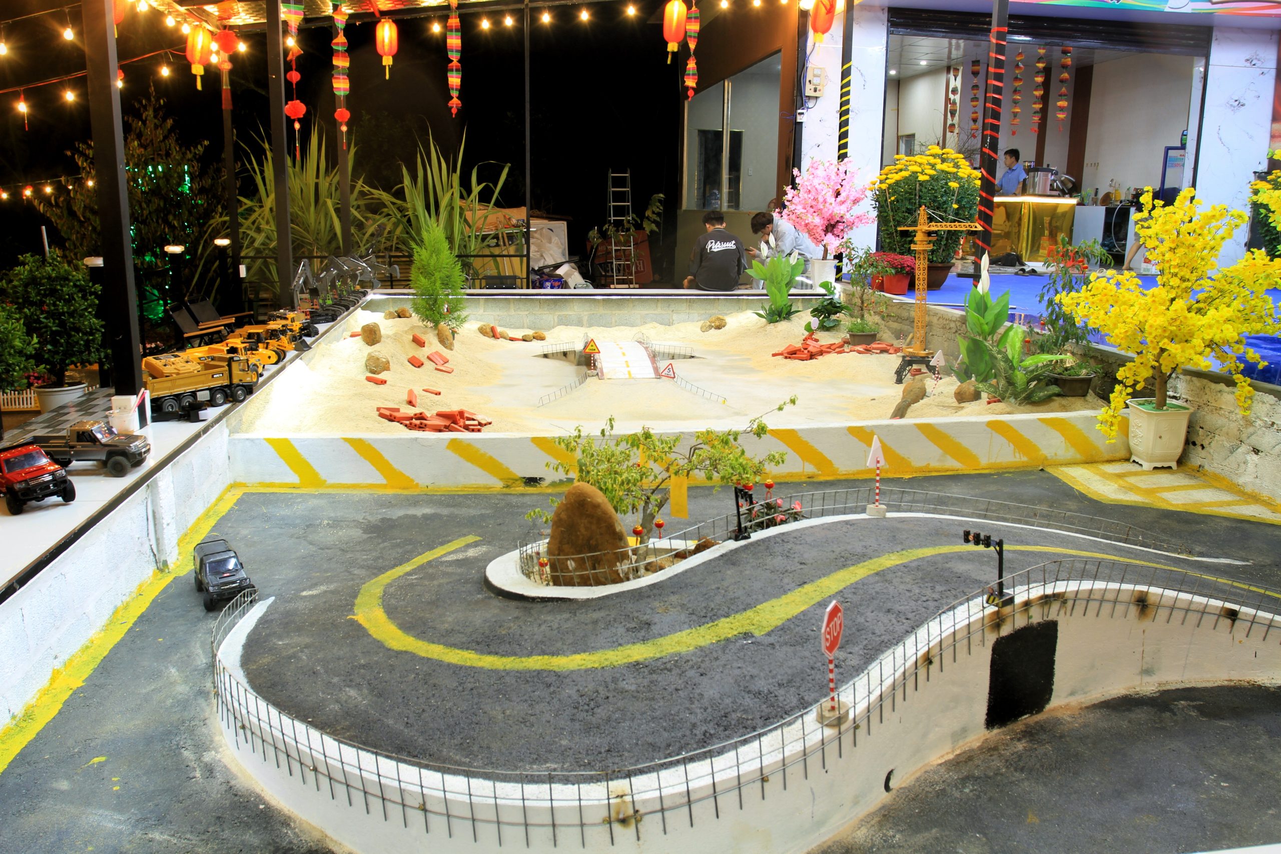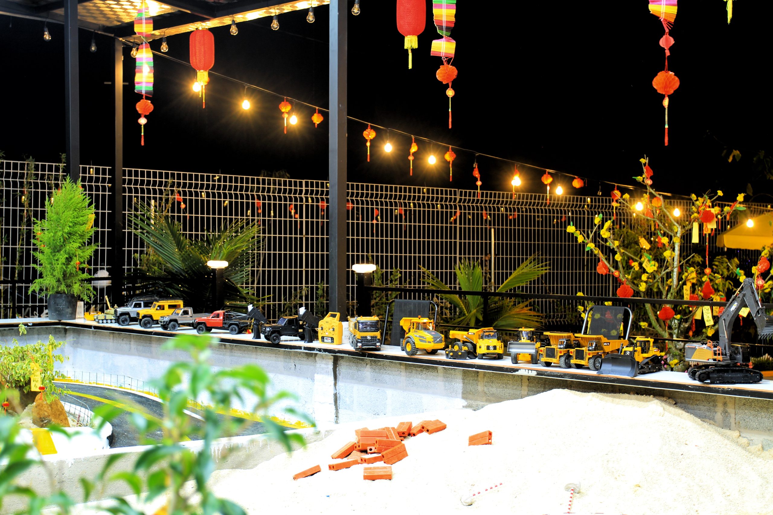 Điểm nổi bật tại Bình An Coffee là khu “công trường thu nhỏ” với xe công trình điều khiển từ xa (RC).