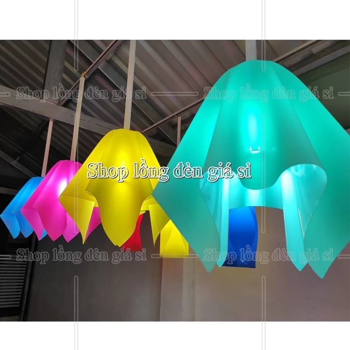 Đèn lồng được thiết kế gồm 1 mảnh nhựa và 2 vòng tròn, khi lắp ráp sẽ tạo thành chiếc đèn hình rũ đẹp mắt.