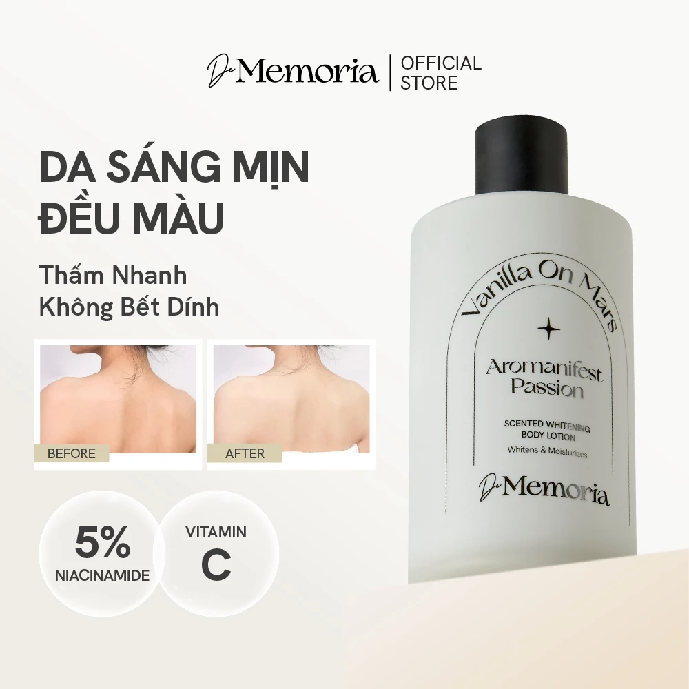 Dưỡng Thể Trắng Da Hương Nước Hoa De Memoria Scented Whitening Body Lotion 300ml – Dưỡng Ẩm, Sáng Da, Lưu Hương 8 Giờ